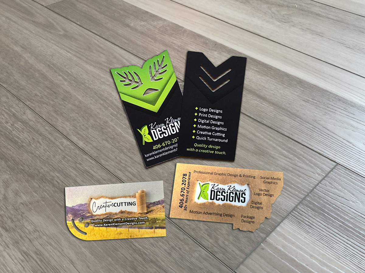 Karen creates all designs, professional printed & cuts everything in-house. Small and large projects are welcomed.